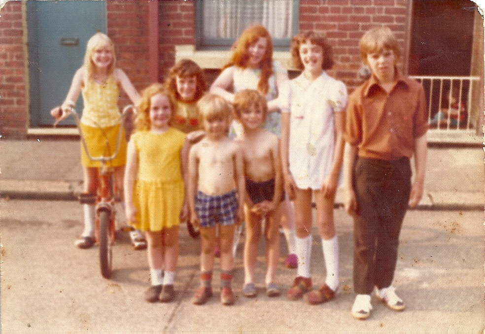 Julie’s sister, Clare, and her friends, who were playing further up the street, paused in their play as Julie and Rita approached. For a group of eight year olds, the image of Julie and Rita dressed to go out was a sight to behold, and they gazed in awe as the two older girls walked by.